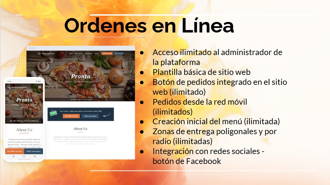 Pedidos en efectivo en línea, pedidos con tarjeta en mostrador al recoger, y pedidos por teléfono tomando los datos de la tarjeta (ilimitado)